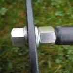 Die Kufen (3 Stck) werden aus 6 mm gehärtetem Baustahl hergestellt. Die Kufen werden in Lasertechnik ausgeschnitten. Der Schliff ist 2×45 Grad mittig .Die Buchsen für die Achsaufnahmen werden aus Edelstahl gedreht und mit einem speziellen Schweißverfahren (Wig) aufgeschweist.Die Steuerkufe hat jeweils links und rechts genau auf das Gabelmaße zugeschnittene Buchsen. Die Seitenkufen werden an der Achsaufnahme durch aufgearbeitete Fixirplatten verstärkt, damit die Kufe auch in Grenzbereichen sicher führt. Die Kufen entsprechen von den Maßen (Höhe) den Monsterweels. Auch die vordere Kufenaufhängung wird an Eure Gabel angepasst.
