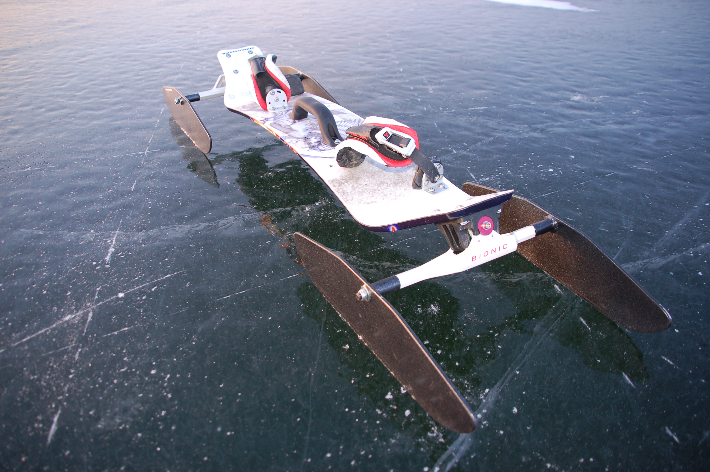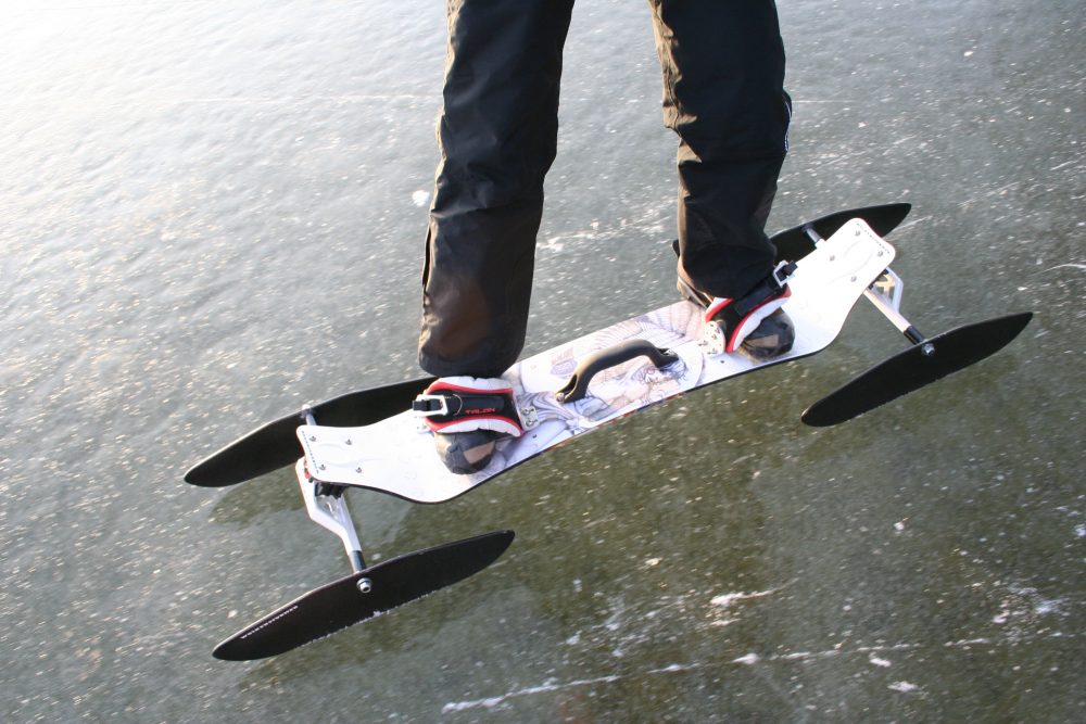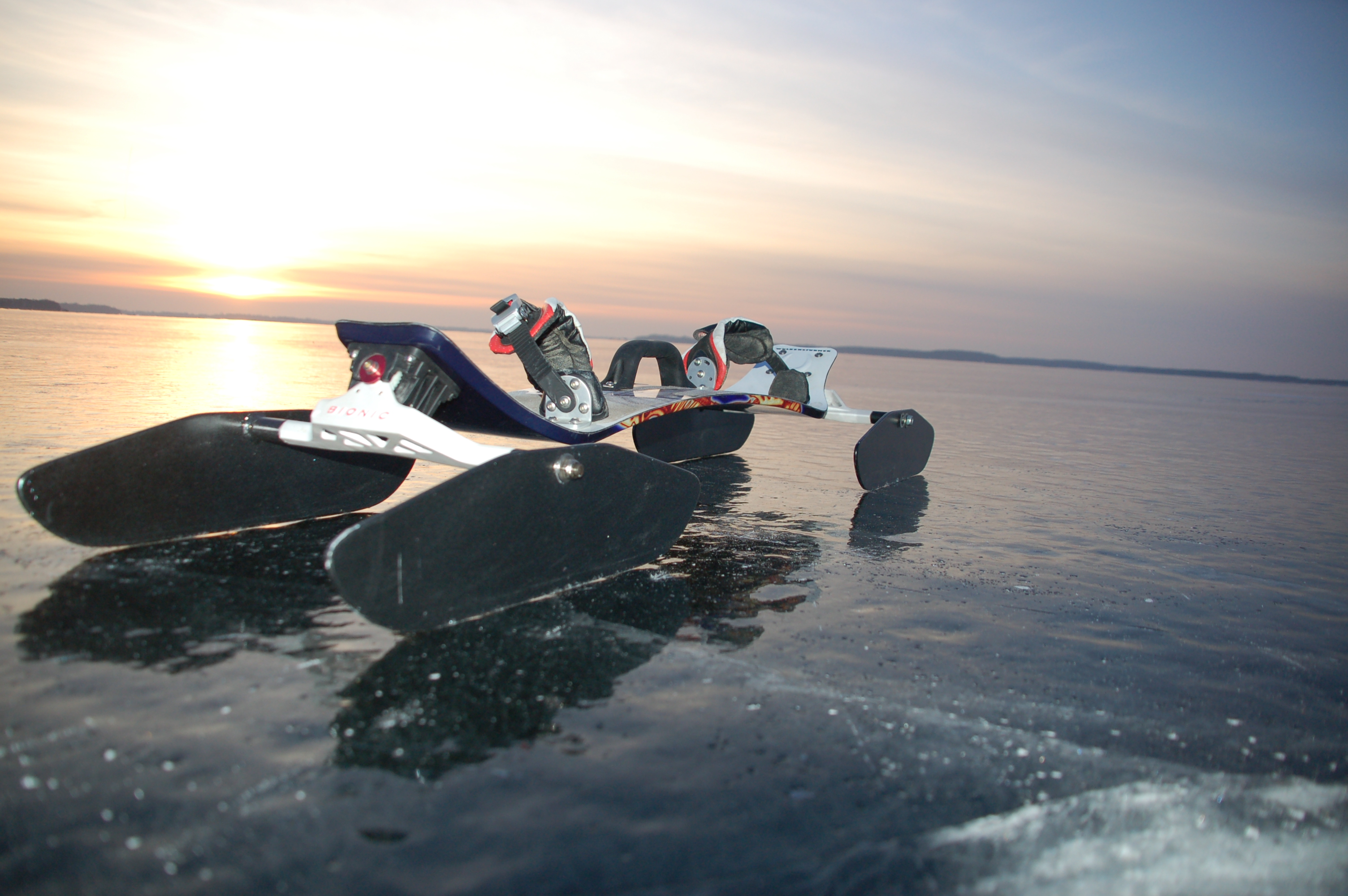 das Cross/Mountainboard eignet sich nicht nur auf Land mit Rädern, sondern auch mit Kufen auf dem Eis zum Eiskiten, die Kufen werden so geschliffen, dass sie in beide Richtungen fahrbar sind. So ist die Fahrweise die gleiche wie auf Land, oder auf dem Wasser mit einem Kiteboard.